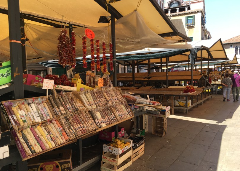 Questo luogo, un tempo mercato vivo dei Veneziani, che vi andavano a fare la spesa, negli anni ha cambiato pelle. Oggi purtroppo sono pochi i banchi “non turistici”, che non espongano in bella vista stereotipate confezioni di pasta colorata, o miscugli secchi per tirar fuori non so quale improbabile condimento.