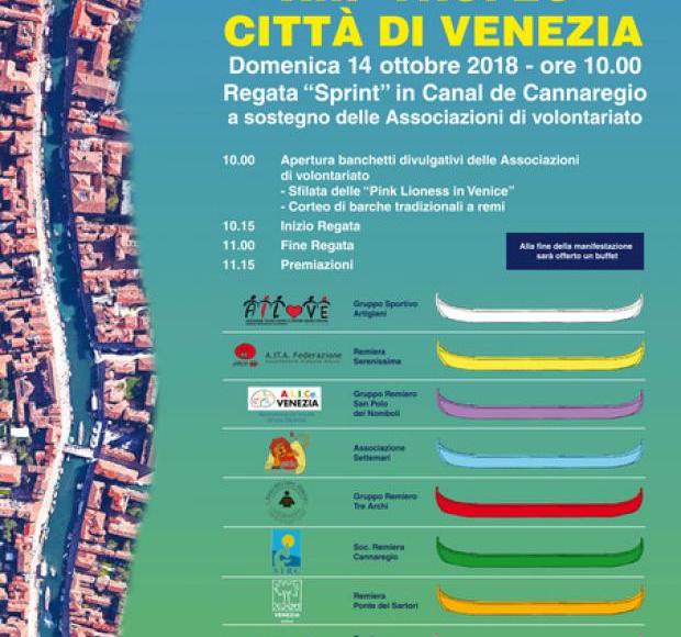 Si svolgerà domenica 14 ottobre la tredicesima regata sprint di voga alla veneta “Città di Venezia”, organizzata a scopo benifico, a sostegno delle Associazioni di volontariato della città, come affermato sul sito del Comune.