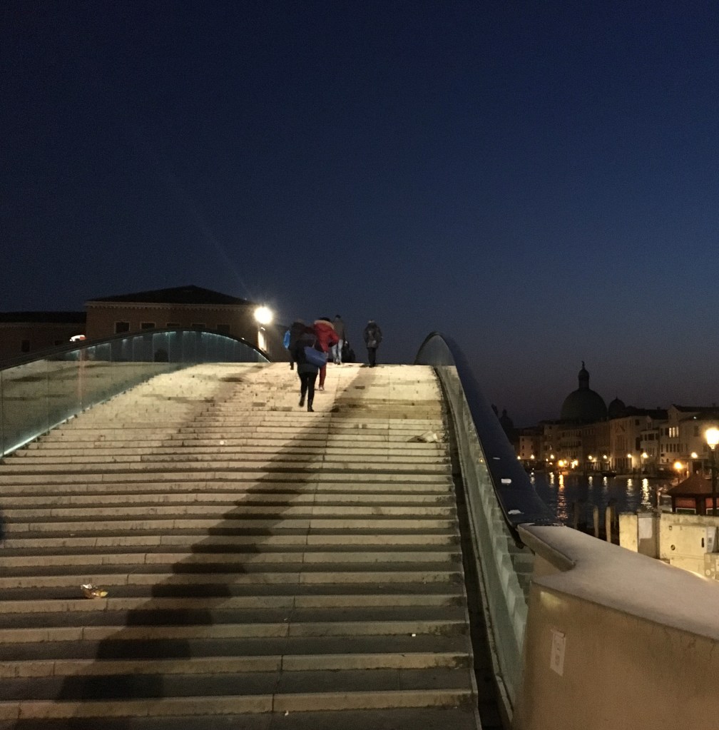 Un consiglio per chi non conosce ancora bene Venezia: se dovete passare sul Ponte di Calatrava, quello che collega Piazzale Roma alla Stazione Santa Lucia, camminate sulla parte centrale in cemento!