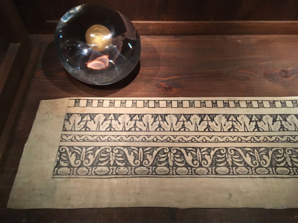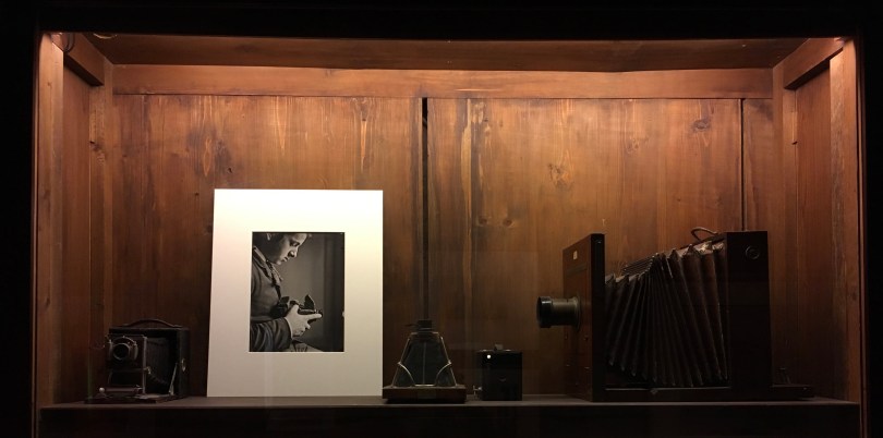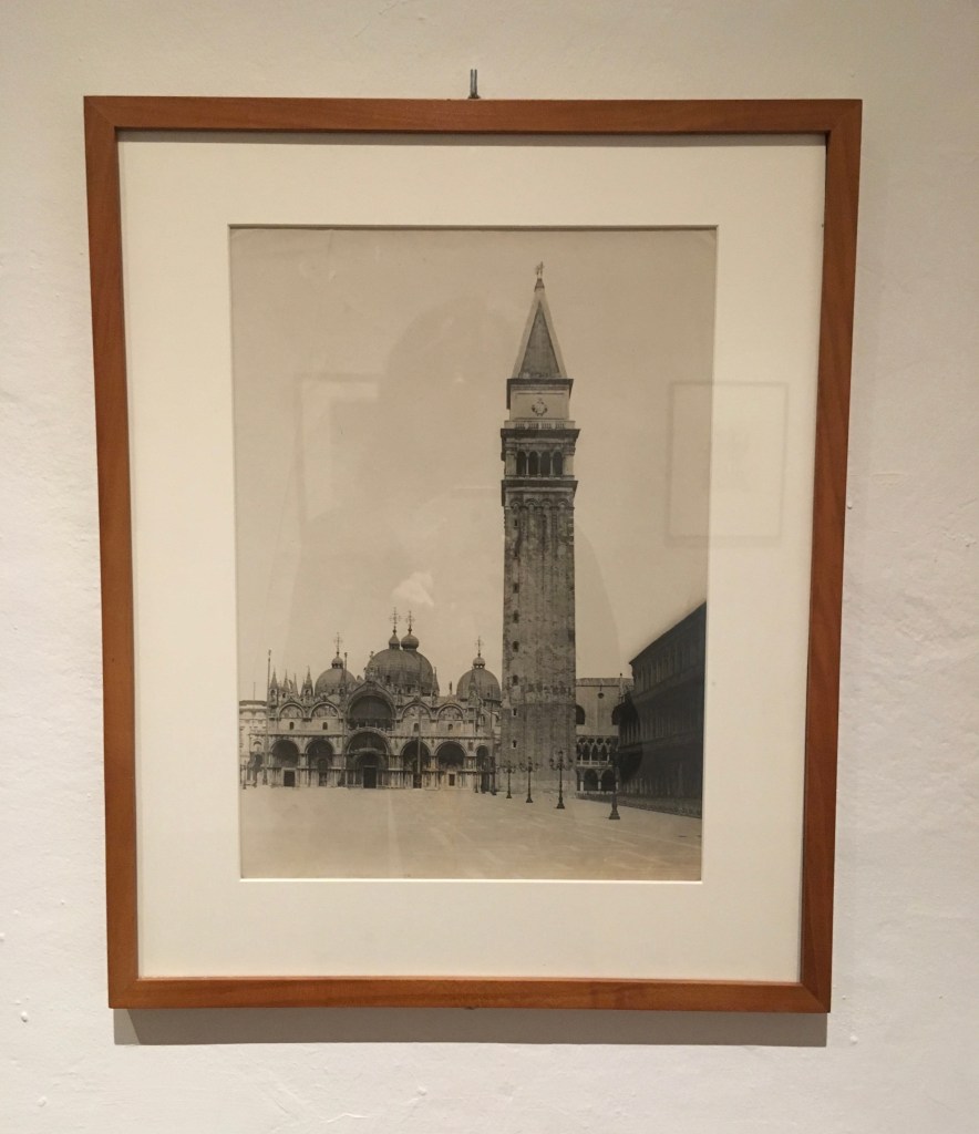 Si entra poi in una stanza meravigliosa, con modelli di Teatri a ricordare l’opera di scenografo di Fortuny, ed enormi pannelli circolari di legno con stampe fotografiche incollate sopra, sempre sue.