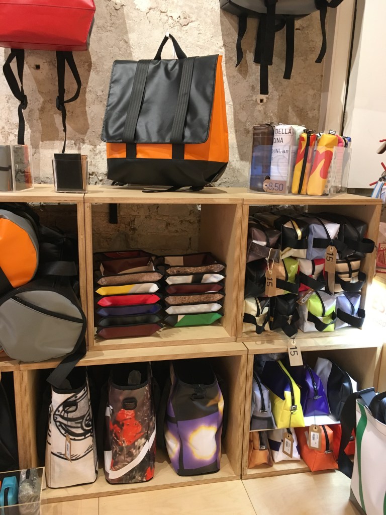 - Una menzione la merita anche le Malefatte (di cui ho già scritto) dove vengono vendute borse e altri oggetti prodotti riciclando gli striscioni pubblicitari degli eventi culturali di Venezia. Potrete davvero portarvi a casa un pezzo di Venezia da utilizzare tutti i giorni! Unico problema: un po’ fuori strada rispetto al percorso-base. Ma in compenso davanti a un’altra chicca di Venezia, la straordinaria Basilica dei Frari, che in caso di tempo a disposizione maggiore, vi suggerisco caldamente di inserire nel percorso.