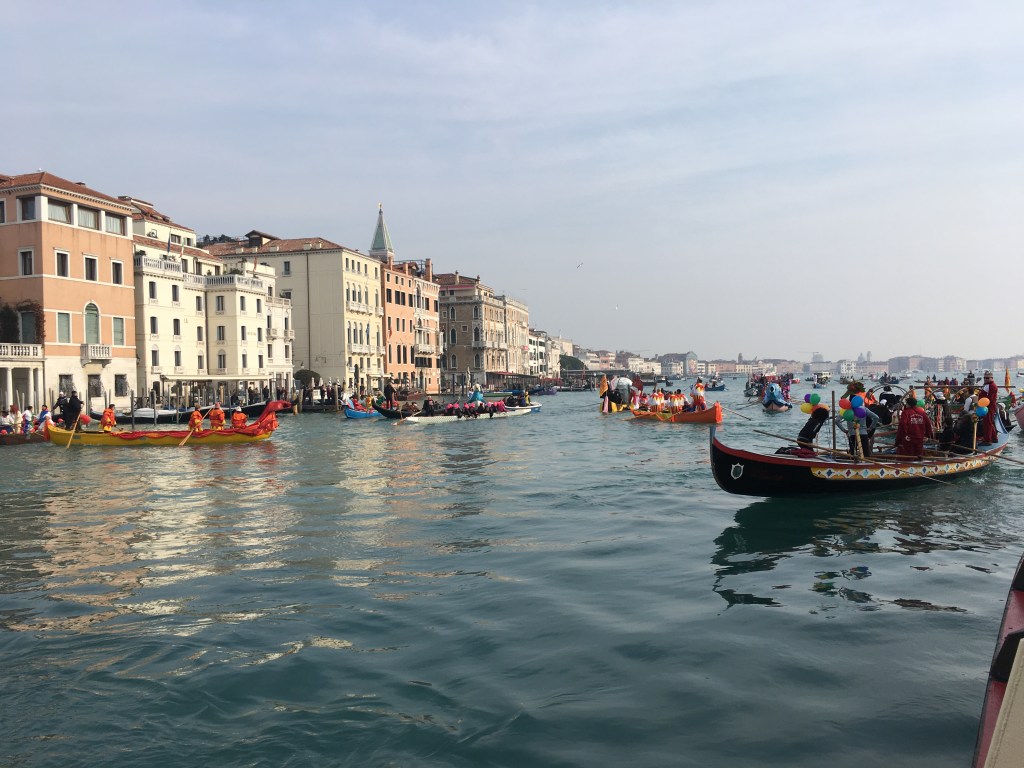 Ieri infatti ero sul vaporetto della linea 1 quando, all’altezza di Punta della Dogana (partenza del Corteo) mi sono trovata circondata dalle coloratissime imbarcazioni che si apprestavano a raggiungere il Rio di Cannaregio.