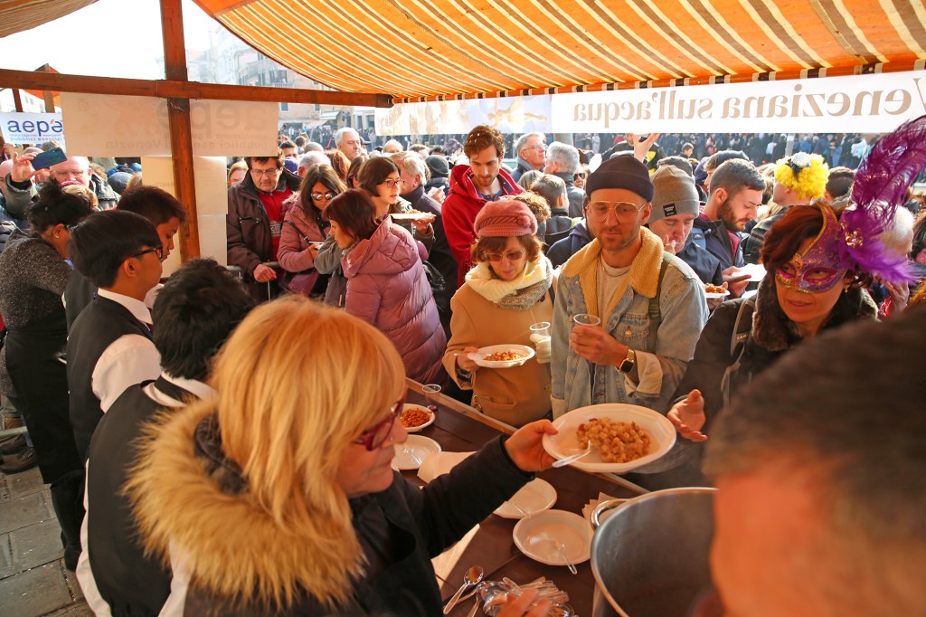 Qui sotto le foto ufficiali messe a disposizione dall’Organizzazione del Carnevale di Venezia, con le immagini della parte più “gastronomica” della festa che ha visto la distribuzione di 20.000 cicheti offerti dall’AEPE (Associazione Esercenti Pubblici Esercizi).