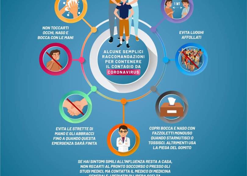 - con “sintomatologie da infezione respiratoria e febbre superiore a 37,5 gradi centigradi” è fortemente raccomandato restare nel proprio domicilio e limitare i contatti sociali;