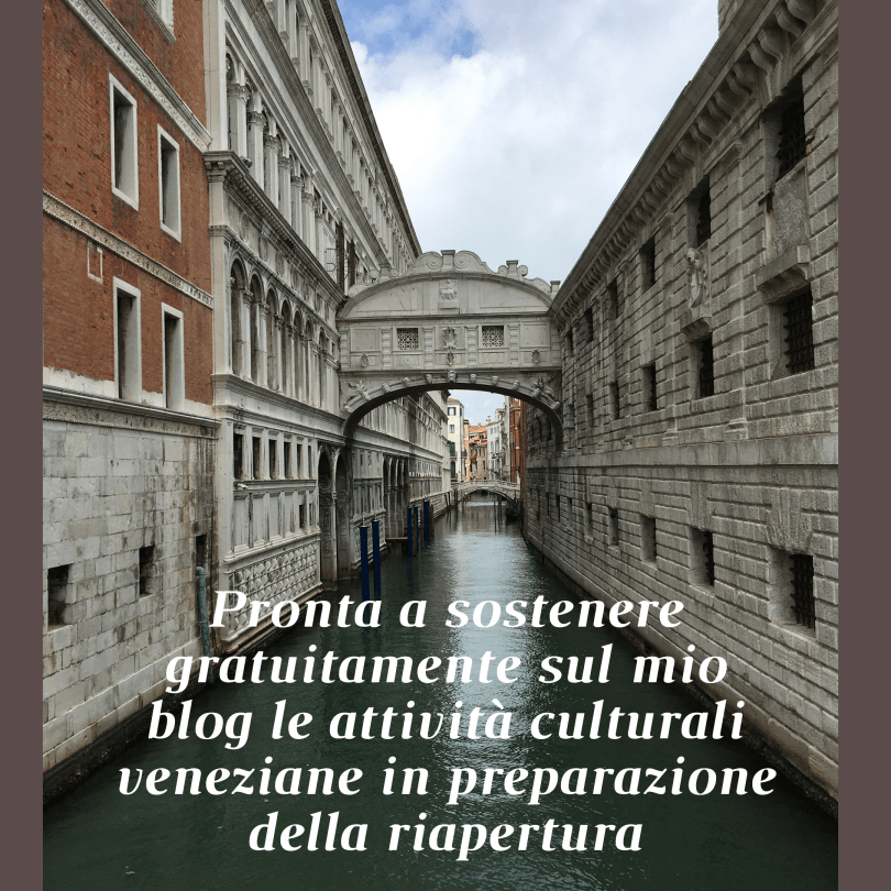 È per questo che nel mio piccolo offro alle attività artistiche o culturali veneziane la mia disponibilità a parlare di loro (ovviamente in forma del tutto gratuita) su queste pagine, per cercare di dare la massima visibilità per me possibile a quanto fanno e al loro nuovo futuro.