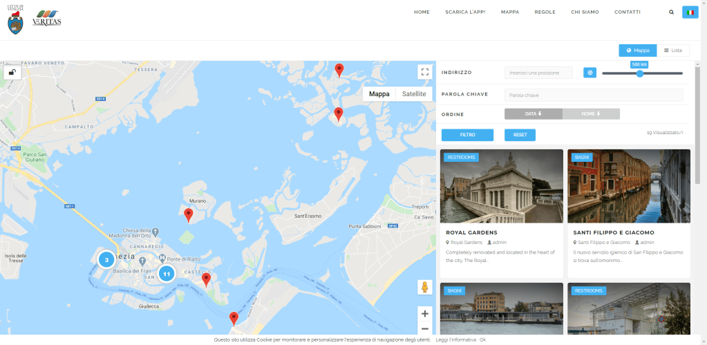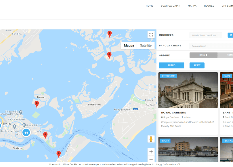Altrimenti possiamo affidarci ai bagni pubblici, sparsi in tutto il Centro Storico e individuabili facilmente su un sito e un’app gestiti dalla società d’igiene ambientale di Venezia, la Veritas.