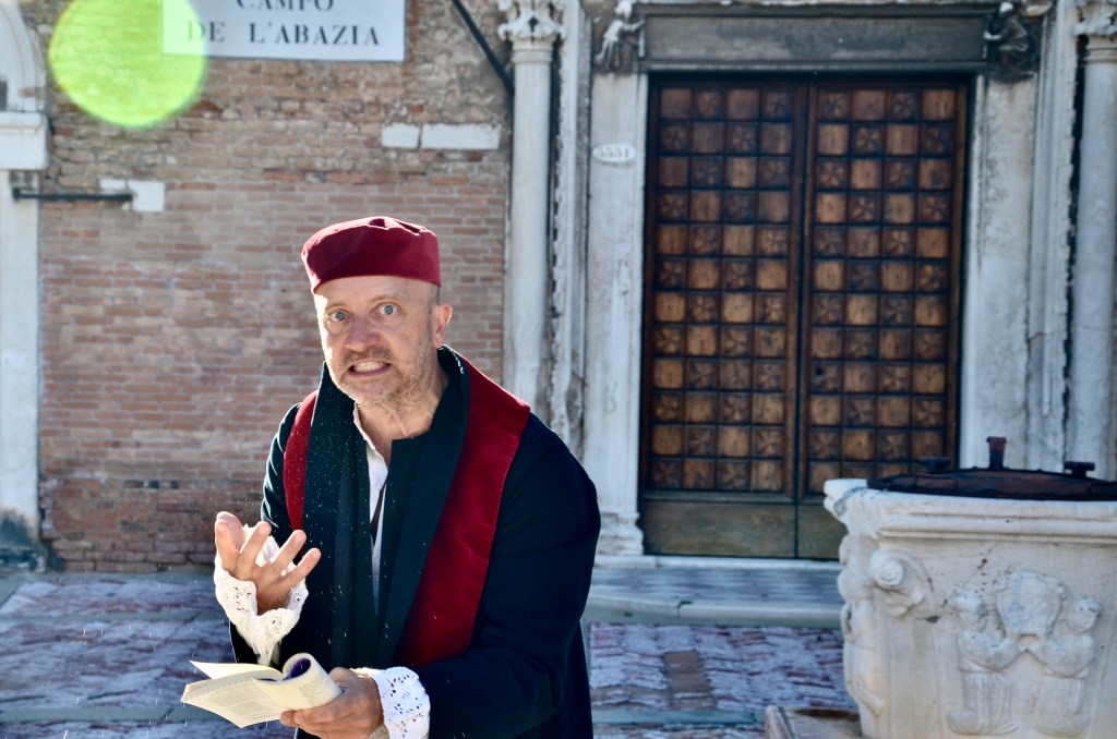 Ecco perché trovo irresistibile questa proposta: una passeggiata per Venezia seguendo Shylock, l’antagonista del Mercante di Venezia di Shakespeare.