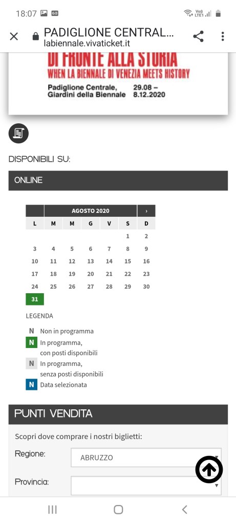 Qui selezionate dal calendario la data e l’ora per cui volete prenotare il biglietto (si va a fasce di mezz’ora). Lasciate perdere il resto della pagina che serve se volete fare acquisti ai botteghini fisici VivaTicket.