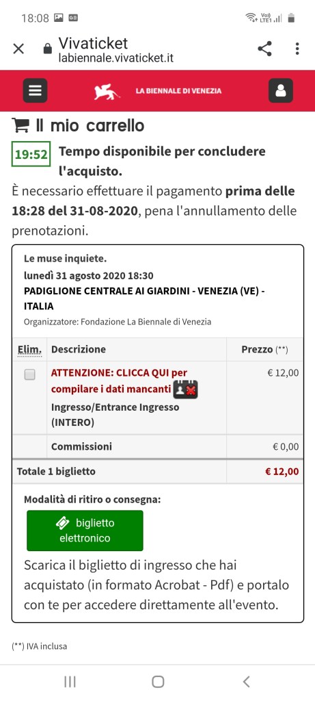 Avete deciso all’ultimo minuto di visitare la mostra ospitata nel Padiglione centrale dei Giardini? Bravi! Ma sappiate che dovete acquistare i biglietti on-line.