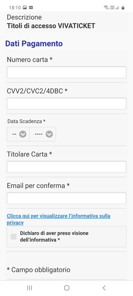 E se per caso volete farlo dal cellulare, magari perché siete proprio davanti ai cancelli e avete scoperto che non è possibile usufruire delle biglietterie, sappiate che non è proprio una passeggiata.
