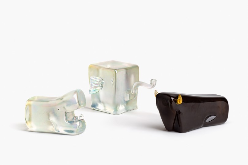 Tre Animali in vetro massiccio, Franck Ehrler, 2005. Grazie a Le Stanze del Vetro. Foto Enrico Fiorese