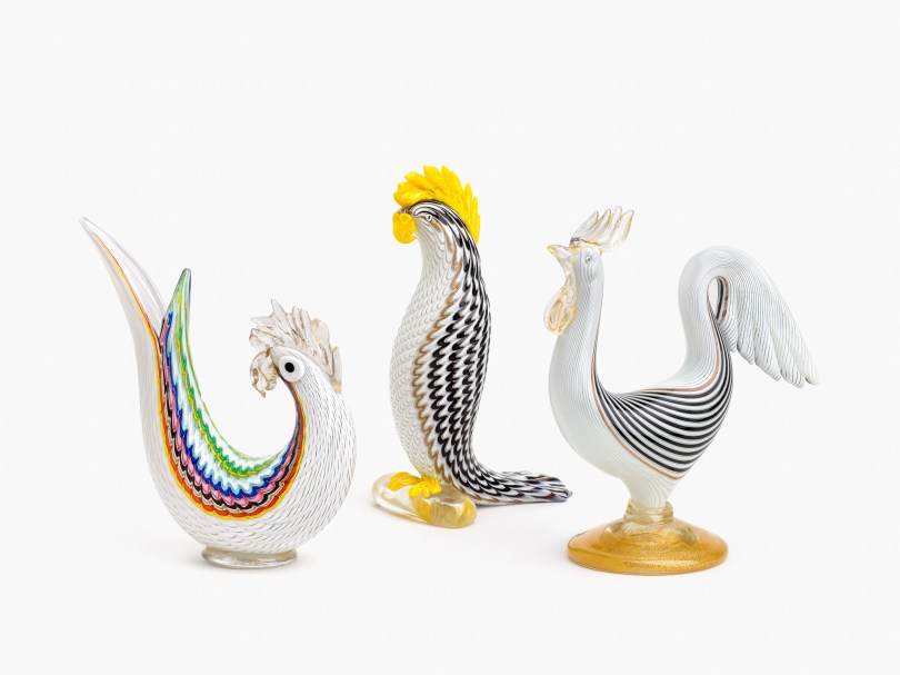 Due galli e un pappagallo di Dino Martens per la vetreria Aureliano Toso, anni cinquanta. Foto Le Stanze del Vetro