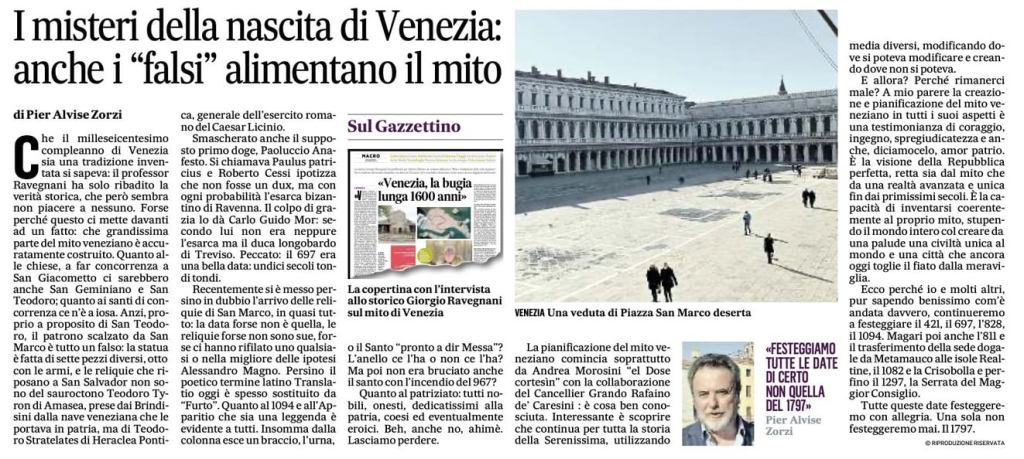 Riprendendo l’intervista a Giorgio Ravegnani uscita sul Gazzettino di domenica 31 gennaio 2021, Alessandro Marzo Magno ha posto l’accento sull’importanza di riconoscere come le leggende siano tali.