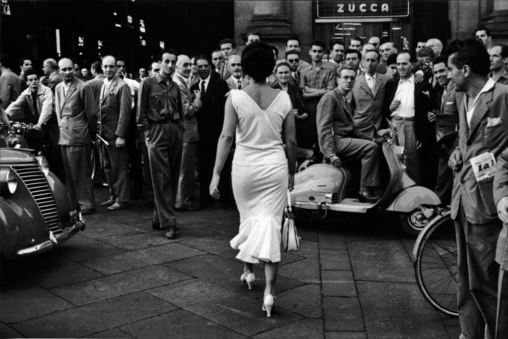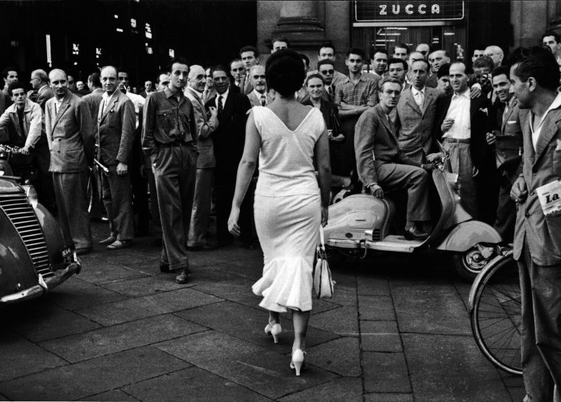 Tra i tantissimi inediti, la Casa dei Tre Oci espone, per la prima volta, l’intera sequenza della fotografia più celebre e probabilmente più amata di De Biasi: Gli Italiani si voltano, realizzata nel 1954 per il settimanale di fotoromanzi Bolero Film e scelta da Germano Celant come immagine guida della sua mostra al Guggenheim Museum di New York, “The Italian Metamorphosis 1943-1968”. Una splendida Moira Orfei vestita di bianco passeggia per il centro di Milano, attirando lo sguardo di un gruppo di uomini.