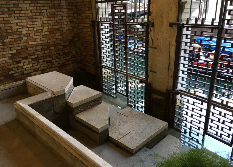 - dall’Area Scarpa della Fondazione Querini Stampalia, aspettando pazientemente che passino davanti la porta d’acqua