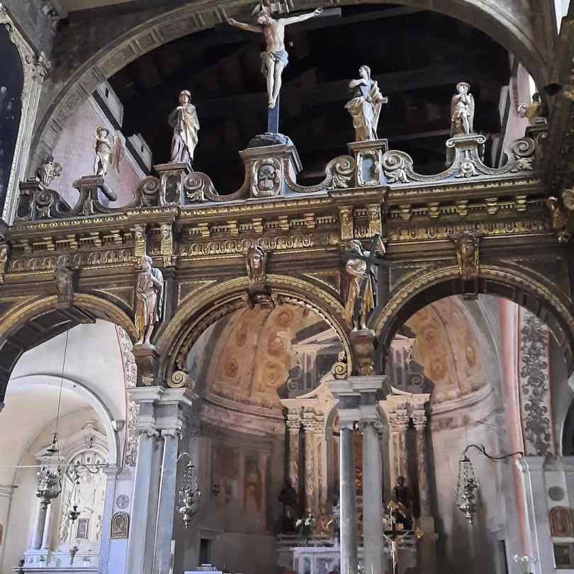Visita interna della chiesa che conserva ancora il portico esterno, tipico delle chiese dell’epoca, intitolata a San Nicola protettore dei naviganti. Anche il campanile è del XII sec mentre l’interno è sontuosamente decorato da dipinti del XVI sec che raccontano episodi della vita del santo, a cui è legato anche il personaggio di Babbo Natale.