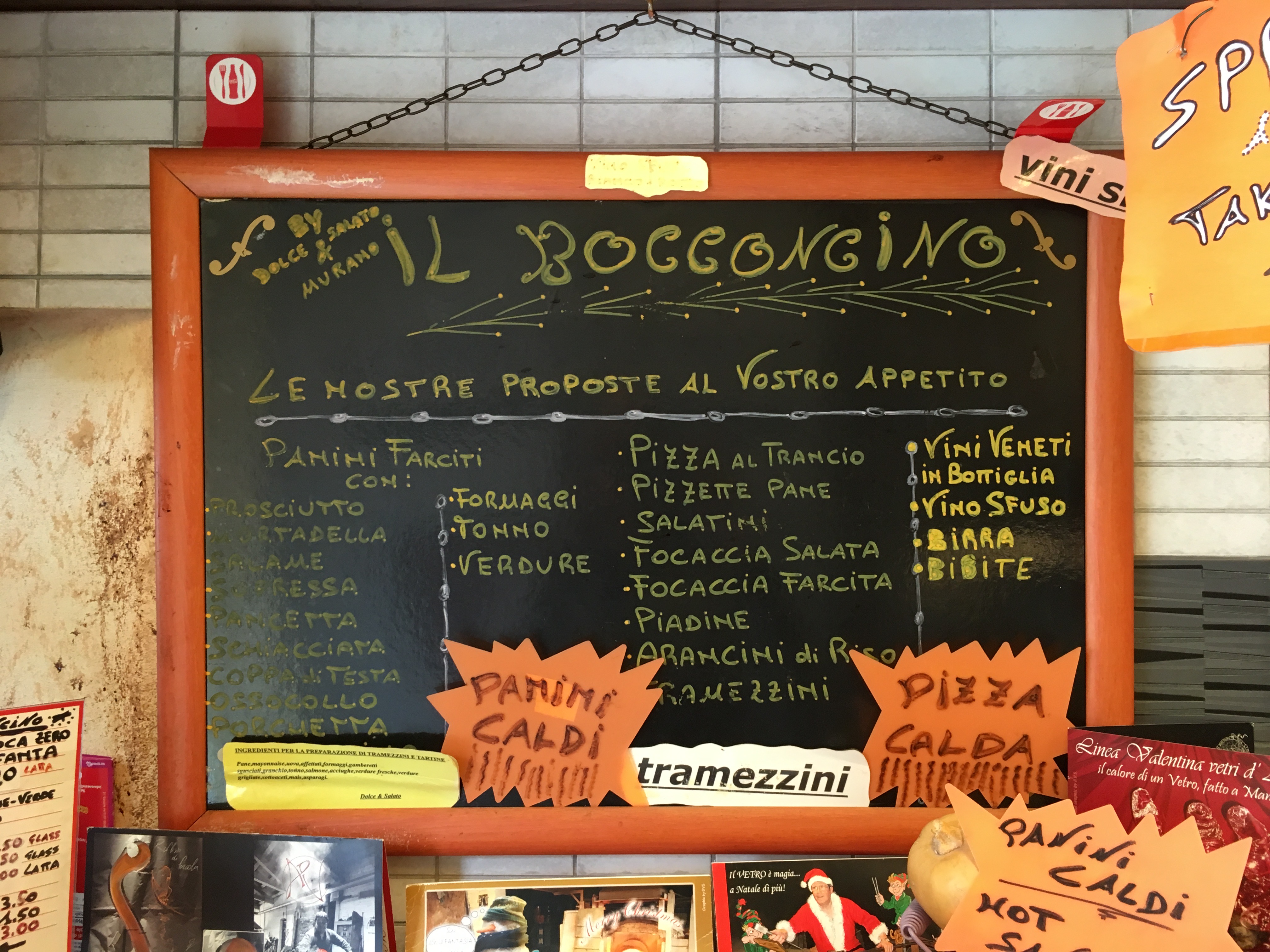 - per mangiare in piedi, di corsa e spendendo poco scelgo di mangiare un panino preparato dal Bocconcino (in Fondamenta Manin), oppure una delle loro pizze farcite o altro che la fantasia dei due proprietari ha fatto preparare