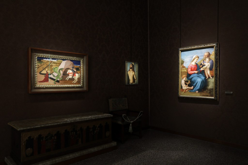 Con l’occasione dell’arrivo di San Giorgio e il drago di Paolo Uccello, la Sala del Rinascimento della Galleria è stata riallestita e il pubblico può ammirare nel nuovo layout i due capolavori di Piero di Cosimo: la Madonna con il Bambino e angeli musicanti e la tavola della Sacra Famiglia con San Giovannino. In particolare quest’ultima opera dell’artista fiorentino è stata restaurata nel 2019 grazie al finanziamento di Save Venice Inc ed è ora apprezzabile in tutto il suo splendore. L’organizzazione no profit statunitense ha sostenuto negli anni numerosi restauri di opere conservate alla Fondazione Cini tra cui si possono ammirare nel percorso di visita alla Galleria di Palazzo Cini: il San Pietro Martire di Vecchietta, restaurato nel 2018-2019; la Modonna dell’Umiltà di Sassetta, restaura nel 2017-2018; La Maestà del Maestro di Badia a Isola, restaura nel 2015-2016.