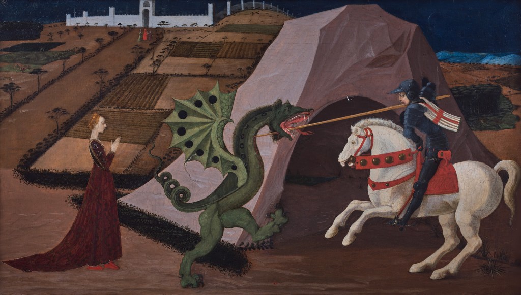 Si parte con la meravigliosa Piranesi Roma Basilico e con il celebre “San Giorgio e il Drago” di Paolo Uccello.