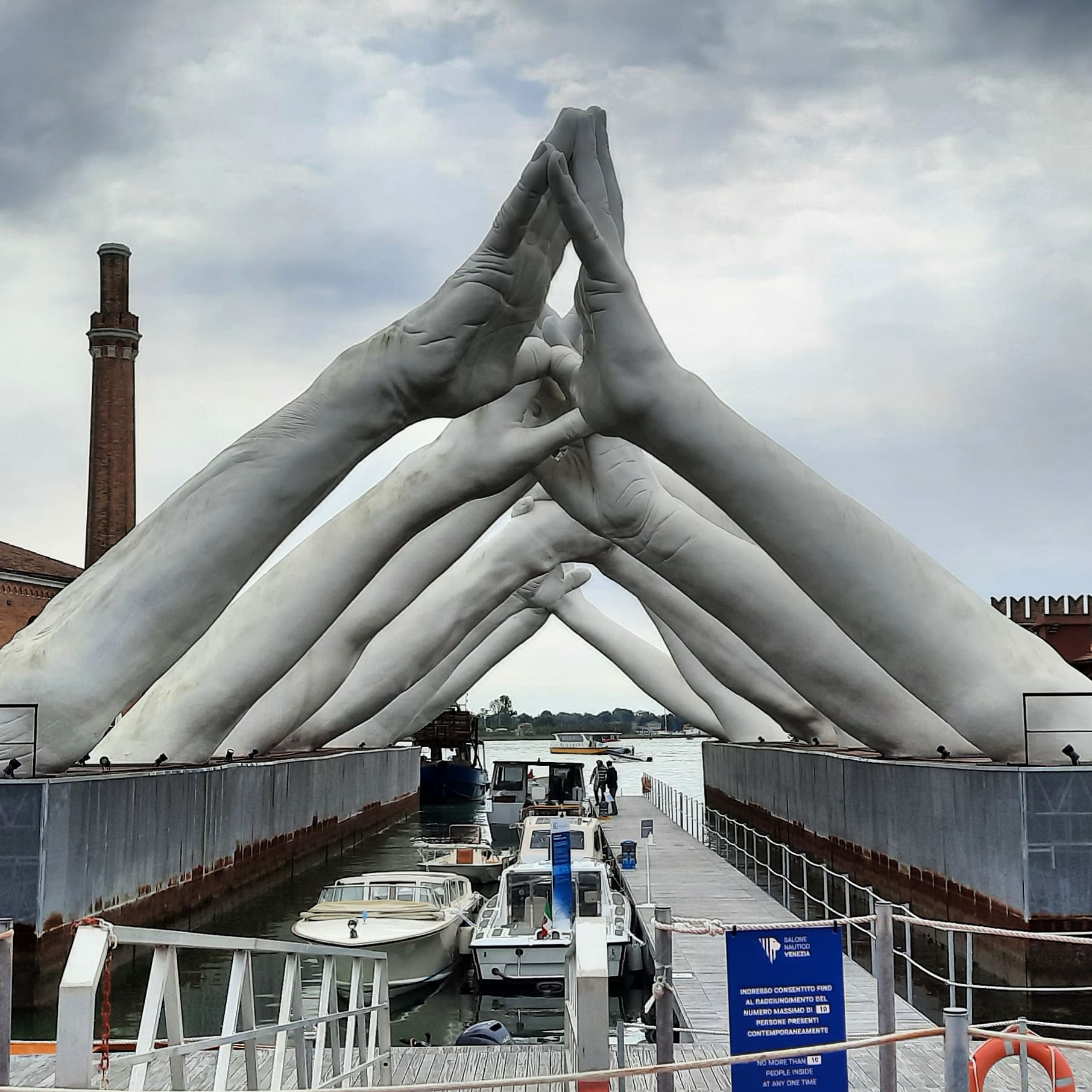 Visitare il Salone consente anche di godere da vicino dell’installazione Building Bridges, di Lorenzo Quinn