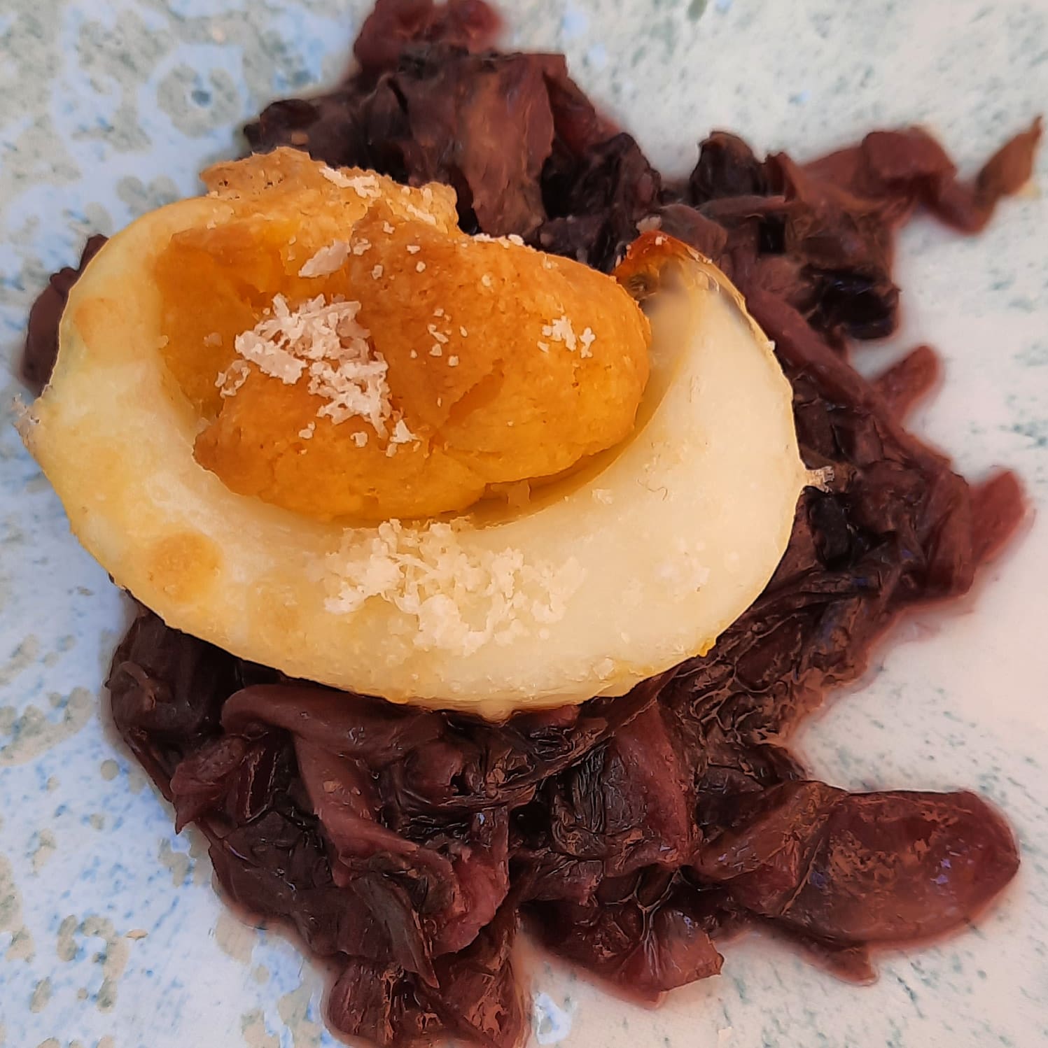 Crêpe Gratinata Ripiena di Ricotta, Santoreggia e Concassè di Verdure