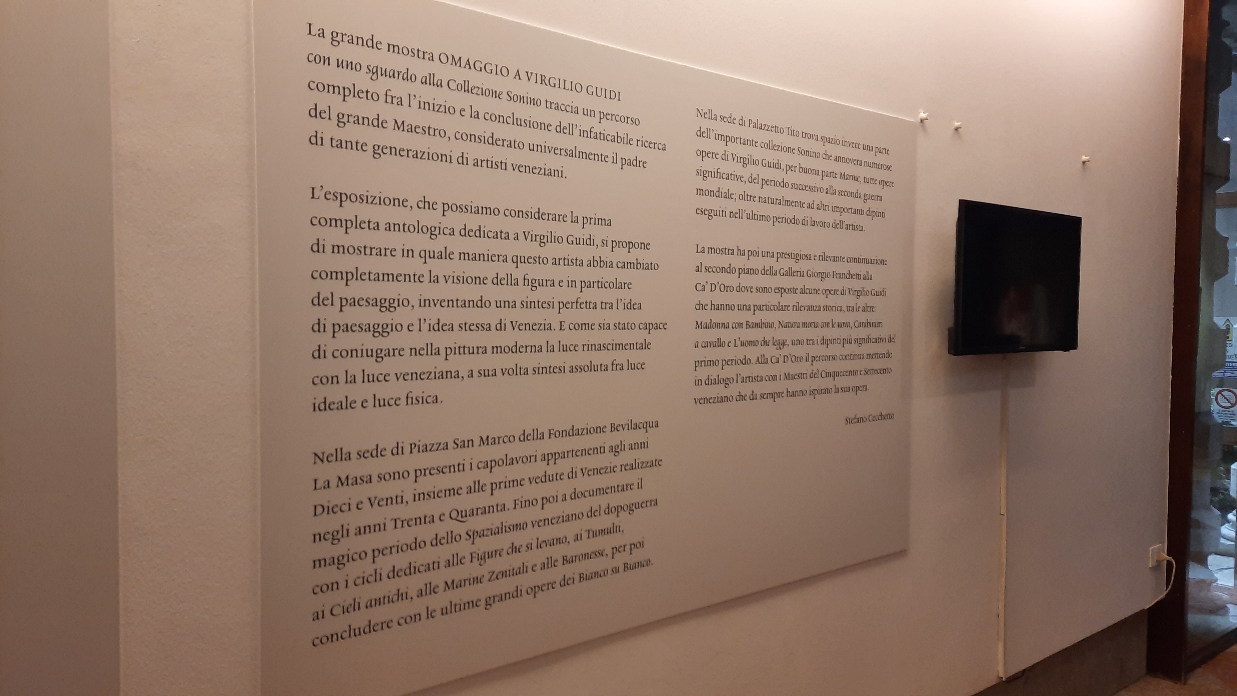 L’esposizione nel suo complesso si propone di mostrare in che modo Virgilio Guidi abbia cambiato completamente la visione del paesaggio e, in particolare, della veduta paesaggistica, inventando una sintesi perfetta e assoluta tra l’idea di paesaggio e l’idea stessa di Venezia. E, ancor di più, come sia stato capace di coniugare nella pittura moderna la luce rinascimentale con la luce veneziana, a sua volta una sintesi fra luce ideale e luce fisica.