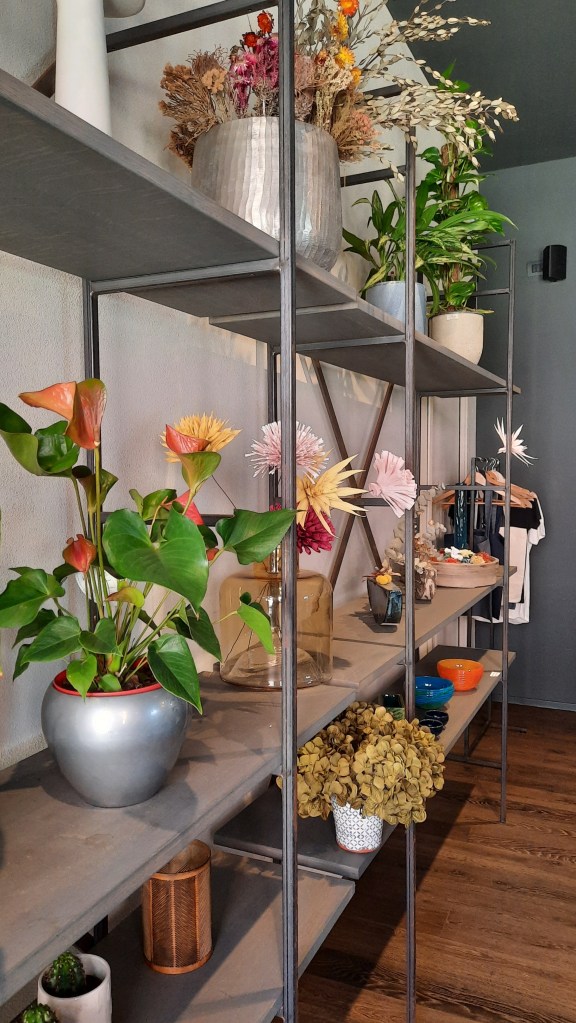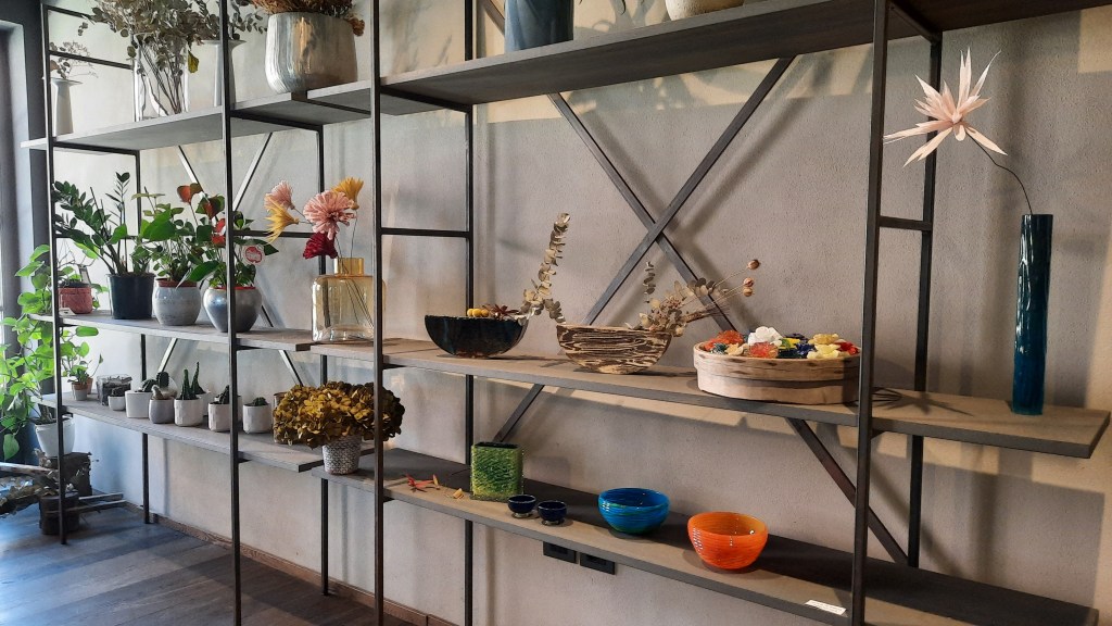 La fioreria con alcune opere d’arte provenienti dall’esposizione che si era conclusa da poco
