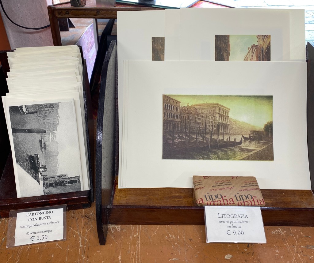Insomma, un salto qui vi consiglio di farlo, io ci sono capitata per caso ma ci tornerò di sicuro, e i miei prossimi biglietti da visita li farò stampare qui, perché se non vogliamo uccidere Venezia o essere complici della sua fine dobbiamo aiutare chi cerca di farla vivere per quello che è: una vera città, non un’attrazione turistica.