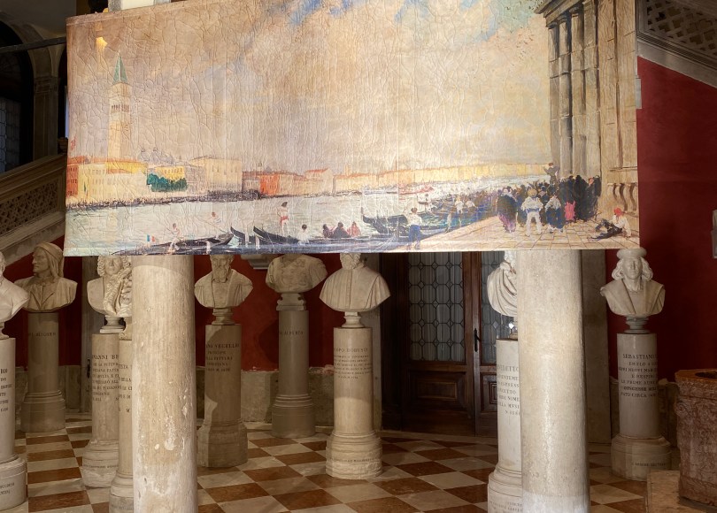In copertina un mio scatto dell’atrio di Palazzo Loredan, che ospita ancora per pochi giorni la mostra dedicata al grandissimo Italico Brass.