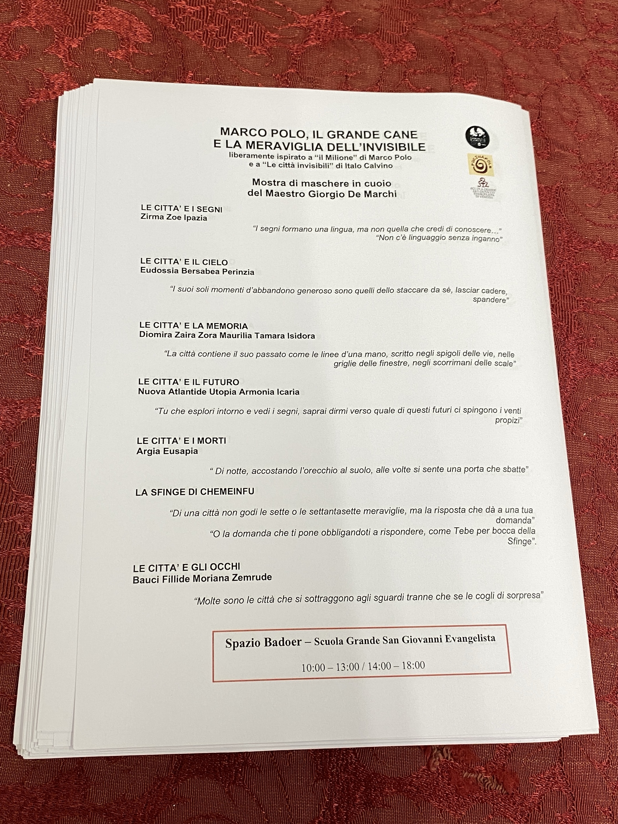 Allo Spazio Badoer della Scuola Grande di San Giovanni Evangelista è visitabile “Marco Polo. Il Grande Cane e la meraviglia dell’invisibile”, mostra di maschere in cuoio del Maestro Giorgio de Marchi.