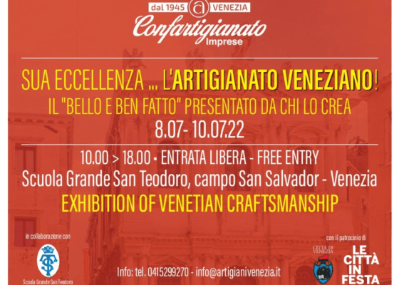 Confartigianato Venezia organizza per il week-end dall’8 al 10 luglio una mostra di artigianato artistico per presentare alcune eccellenze veneziane.